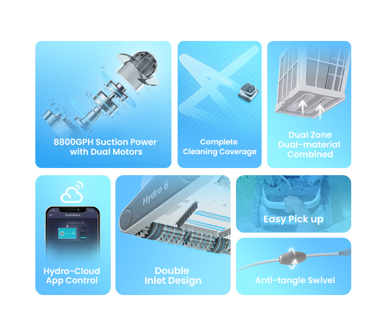 This pool cleaner combines high-speed performance, powerful suction, and advanced smart connectivity in one all-in-one solution. With large pool coverage, precision filtration down to 1 μm, and intuitive app control, it delivers professional-grade cleaning with minimal effort, keeping your pool crystal clear while saving time and energy.